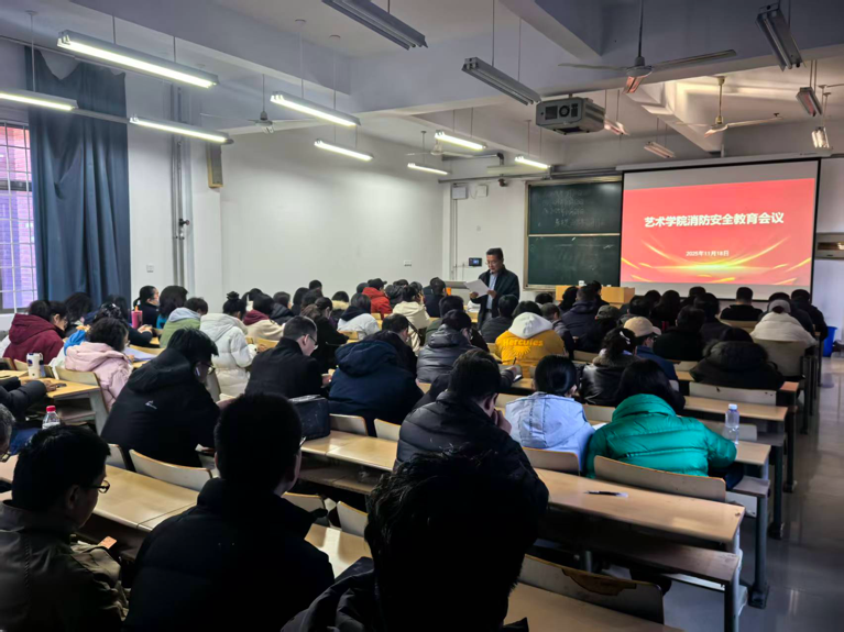 为深入贯彻落实学校2025年“冬季防火月”活动要求,切实强化教职工消防安全责任意识,提升火灾防控与应急处置能力。11月18日下午,艺术学院在美术楼103教室召开消防安全专题学习会议,全体教职工参会,会议由艺术学院院长李建军主持。