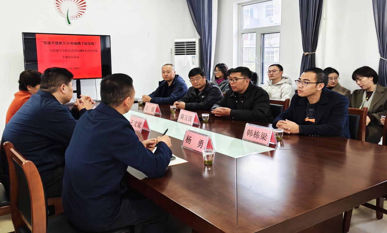 为深入推进“党建红”引领“艺术魂”的育人理念,将思想政治教育融入校地合作实践,11月10日下午,艺术学院党委副书记、副院长带领师生党员代表、专业负责人、新进教师、2025年下半年党员发展对象等20余人,赴胜东社区联合开展“党建共建聚合力·校地携手促发展”活动暨艺术学院党委理论学习中心组(扩大)集体学习。全国劳动模范时新春同志,滨城区副区长、街道党工委书记张旋共同参与本次活动,双方围绕党建引领、资源互通、协同育人等内容进行了深入交流与实践探索。