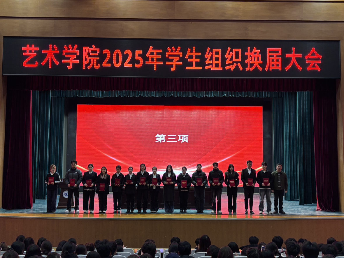 大会尾声,全体参会师生与学生组织成员合影留念,为此次换届大会画上圆满句号。此次大会不仅完成了学生组织的代际交接,更激励着艺术学院学子,以崭新的面貌迎接新的挑战,为艺术学院学生工作的高质量发展筑牢了组织根基。