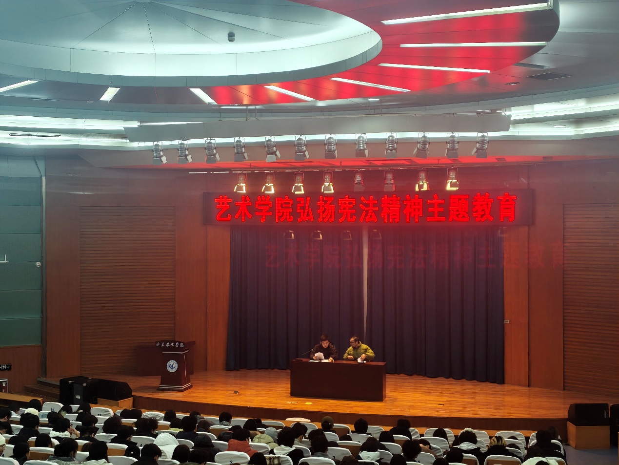 主题教育环节,韩栋梁老师房庆老师围绕“宪法护航青春,法治点亮未来”主题,通过通俗案例解读、互动答疑等鲜活形式,拆解宪法核心要义,明晰青年学生权利与义务,重点讲解法治精神与艺术创作、职业发展的内在关联,倡导新生树立尊法、学法、守法、用法的自觉意识,以法治思维规范言行,成长为守正创新的新时代艺术青年。