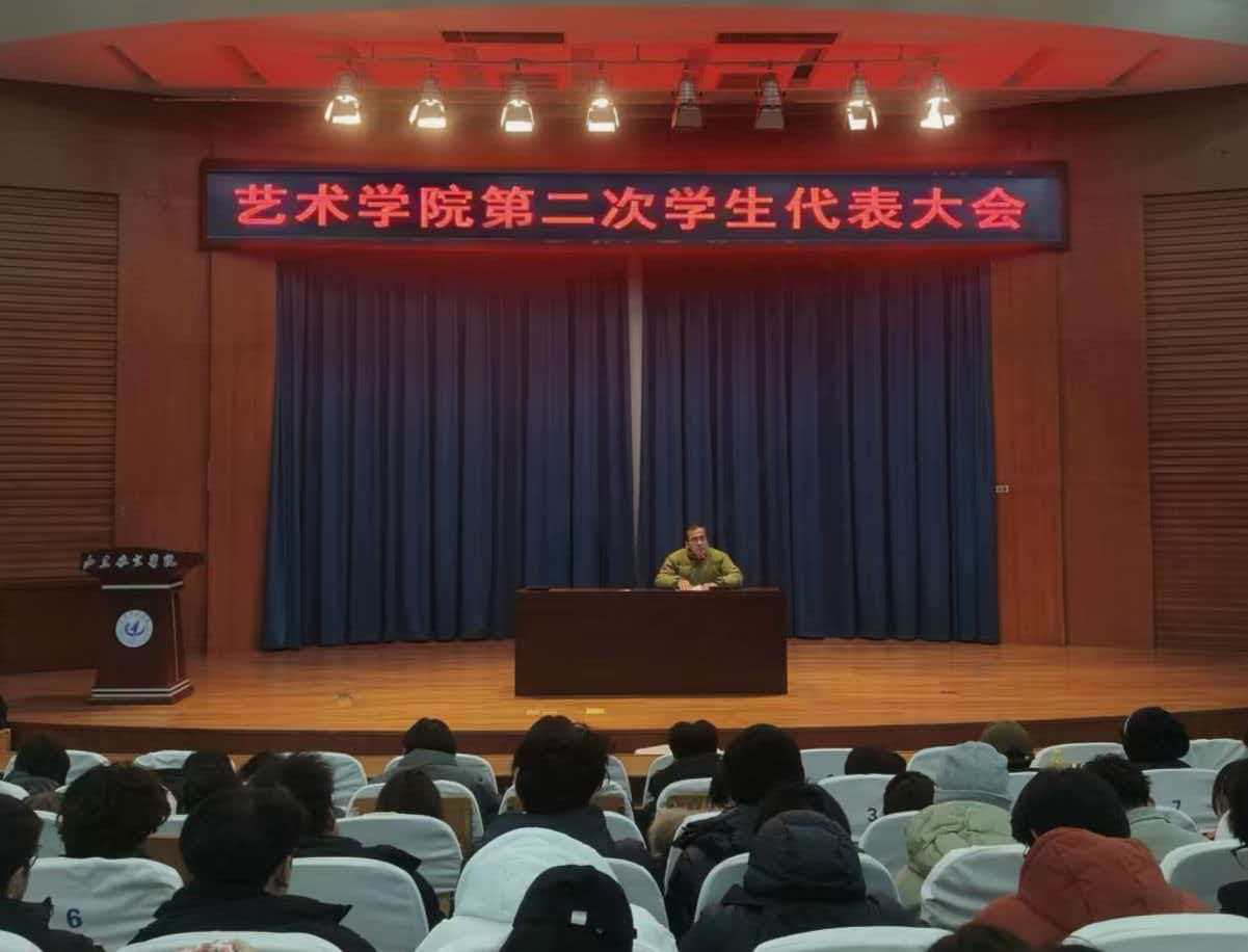 为总结学生工作成效、凝聚青年奋进力量,选优配强学生组织骨干,2025年11月29日,山东航空学院艺术学院第二次学生代表大会在学苑会堂隆重召开。党委副书记秦玉国老师、团总支书记韩栋梁老师及全院学生代表齐聚一堂,共同参与此次青春盛会。