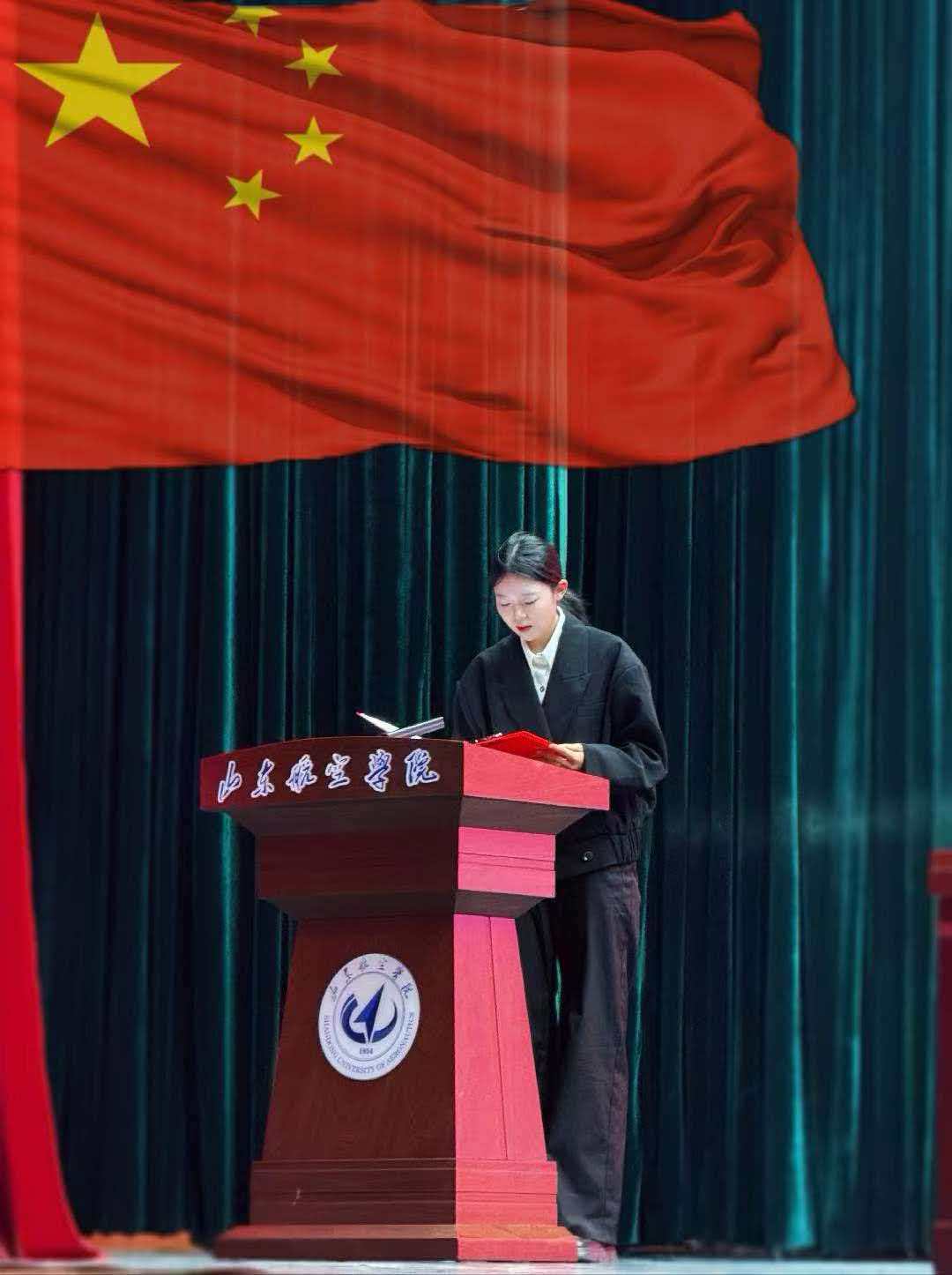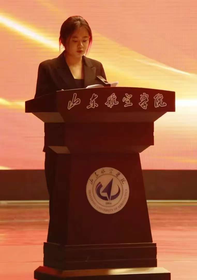 开幕式第二项,由第十届学生会主席张雨歌宣读艺术学院党总支、山东航空学院学生会联合下发的《关于同意召开山东航空学院艺术学院第二次学生代表大会的批复》。