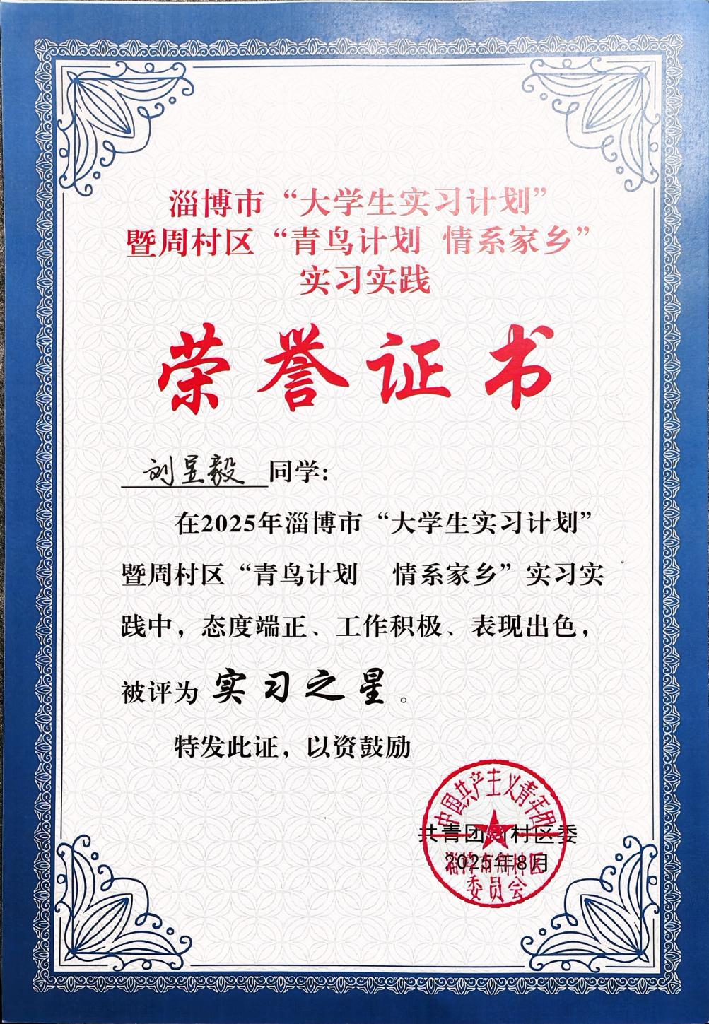 作为山东航空学院23美术本2的学生,刘昱毅在2025年7月16日至8月15日,以淄博市周村区文旅局“青鸟计划”志愿者的身份,完成了3类核心实践任务: