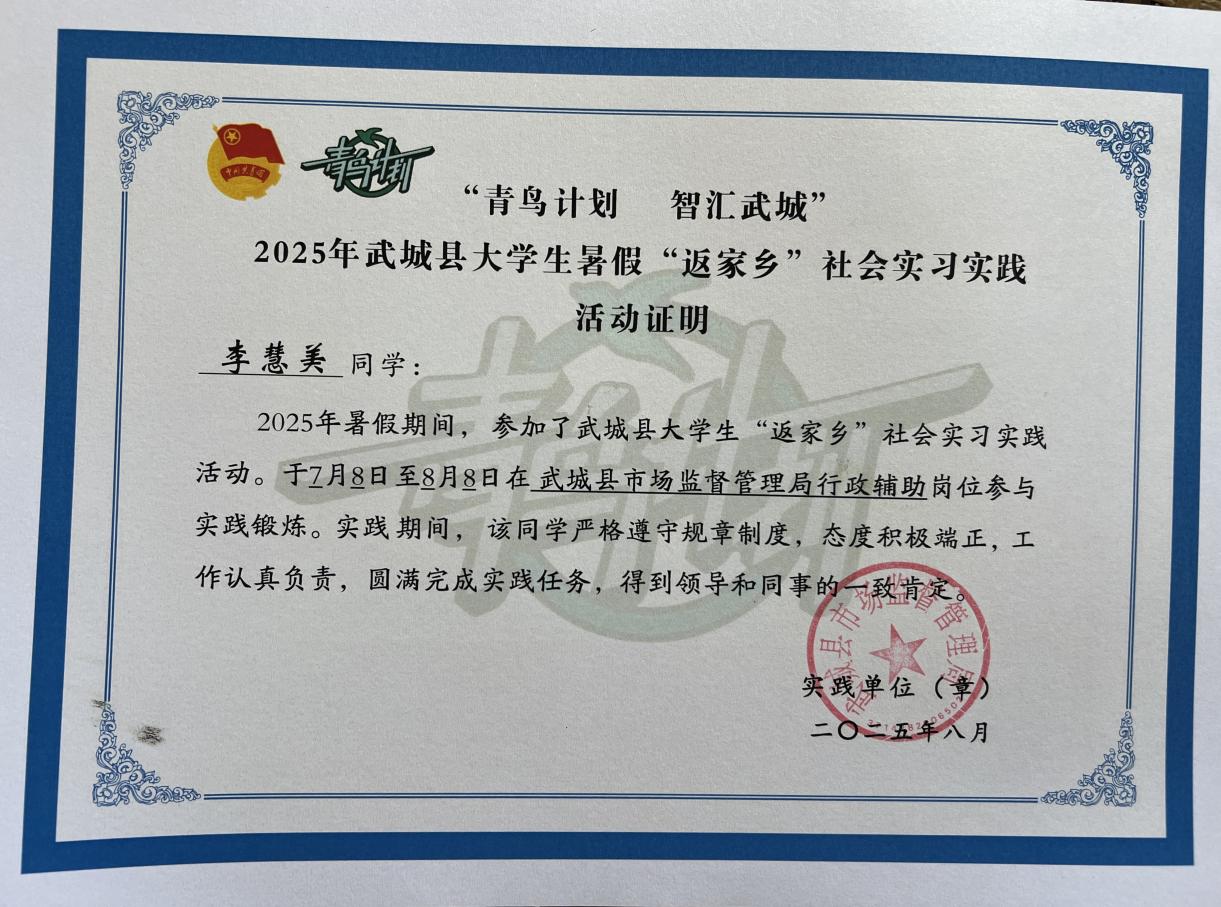 作为山东航空学院22美术本1的学生,李慧美在2025年7月11日至8月8日,以武城县市场监督管理局行政辅助岗志愿者的身份,参与了3类核心基层工作: